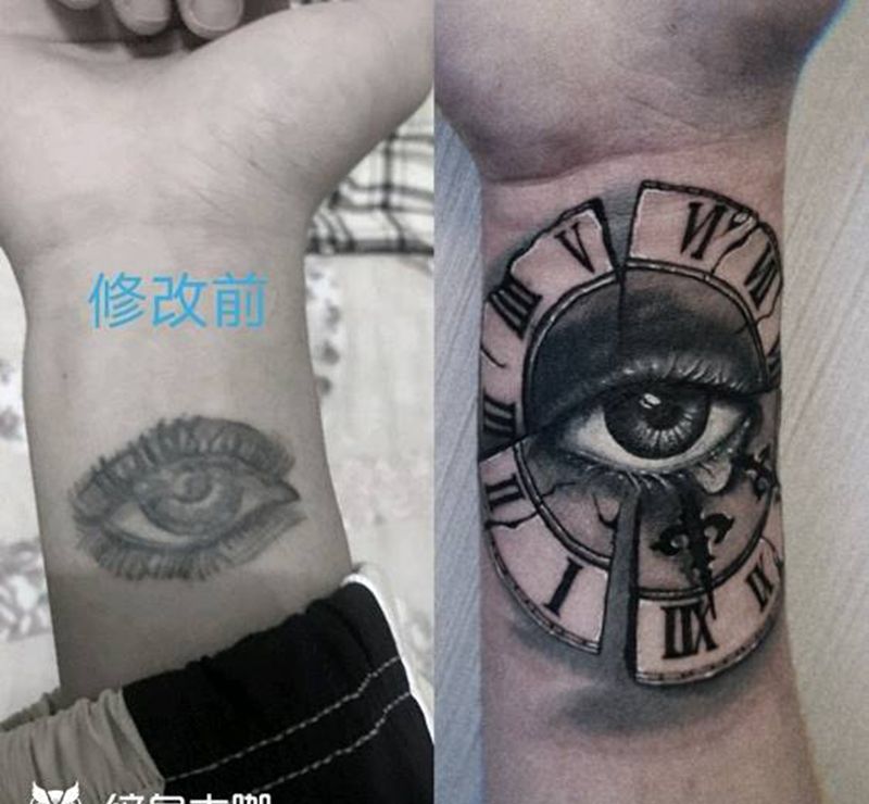 < 上一篇:修改 翻新 遮盖 覆盖纹身图片_手臂肩部欧美写实修改 遮盖纹身图案 下一篇:遮盖 图腾 时钟 怀表纹身图片_欧美写实纹身图案 >