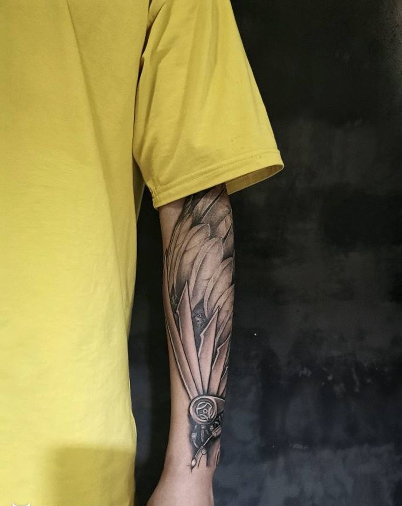 原创机械翅膀包小臂纹身图片_手臂腿部欧美写实原创纹身图案