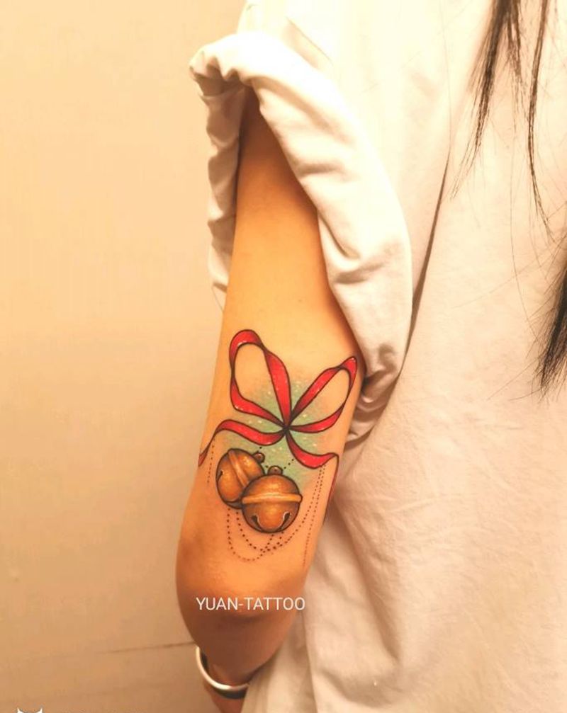 原创 铃铛 丝带 蝴蝶结纹身图片_手臂手部New School水彩纹身图案