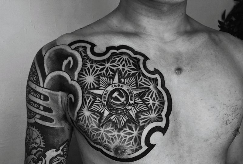 当前位置: 首页 >广东省广州市纹身店-广州匿名者刺青纹身图案>中国风融合图腾纹身图片_手臂胸部图腾几何图腾几何中国风纹身图案