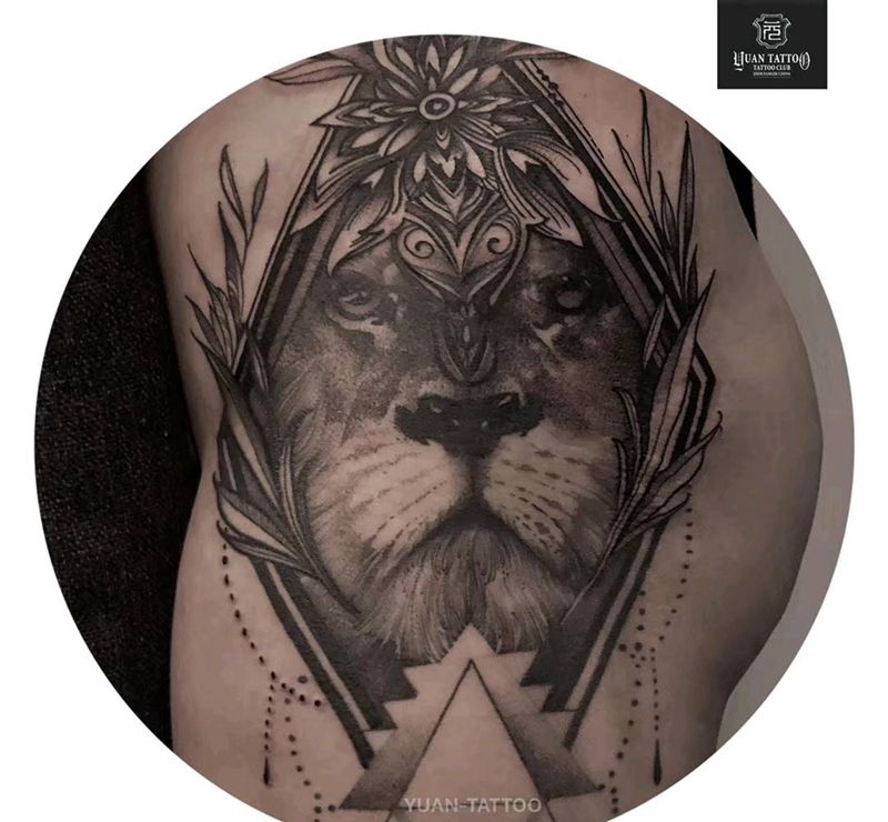 当前位置: 首页 >广东省广州市纹身店-YUAN-TATTOO 元刺青纹身图案>感性狮王纹身图片_腿部臀部欧美写实点刺动物清新纹身图案