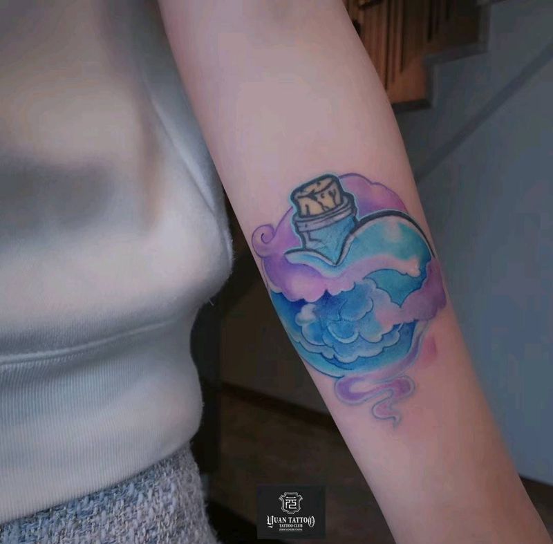 当前位置: 首页 >广东省广州市纹身店-YUAN-TATTOO 元刺青纹身图案>许愿瓶纹身图片_手臂水彩创意纹身图案