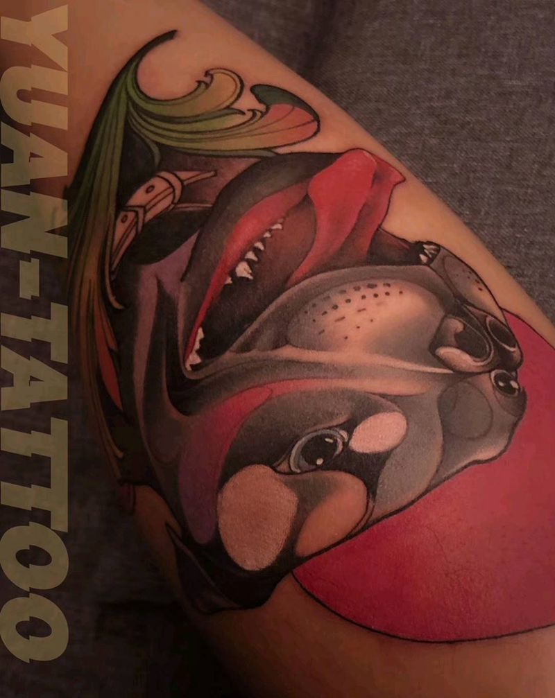 当前位置: 首页 >广东省广州市纹身店-YUAN-TATTOO 元刺青纹身图案>斯坦福斗牛梗纹身图片_手臂水彩动物纹身图案