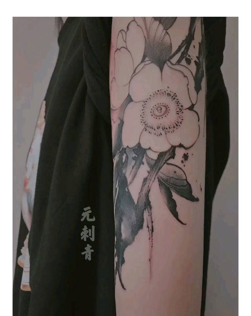 水墨花卉遮盖纹身图片_手臂水墨花卉遮盖纹身图案