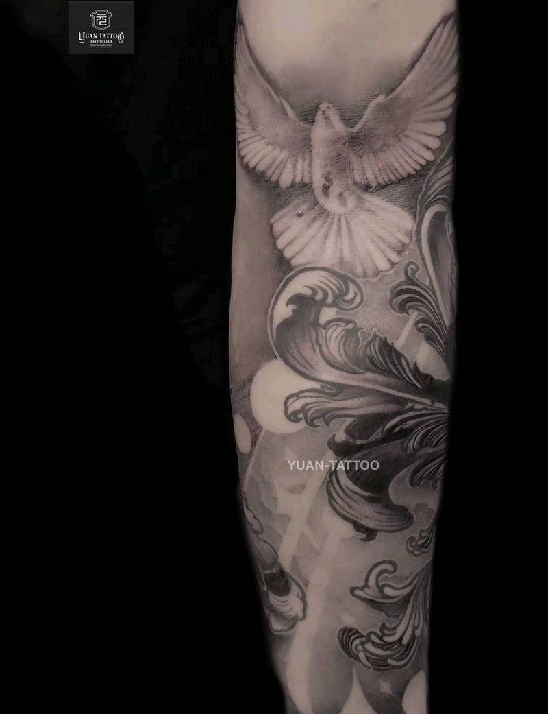 当前位置: 首页 >广东省广州市纹身店-YUAN-TATTOO 元刺青纹身图案>新•花臂纹身图片_手臂欧美写实点刺花卉动物纹身图案