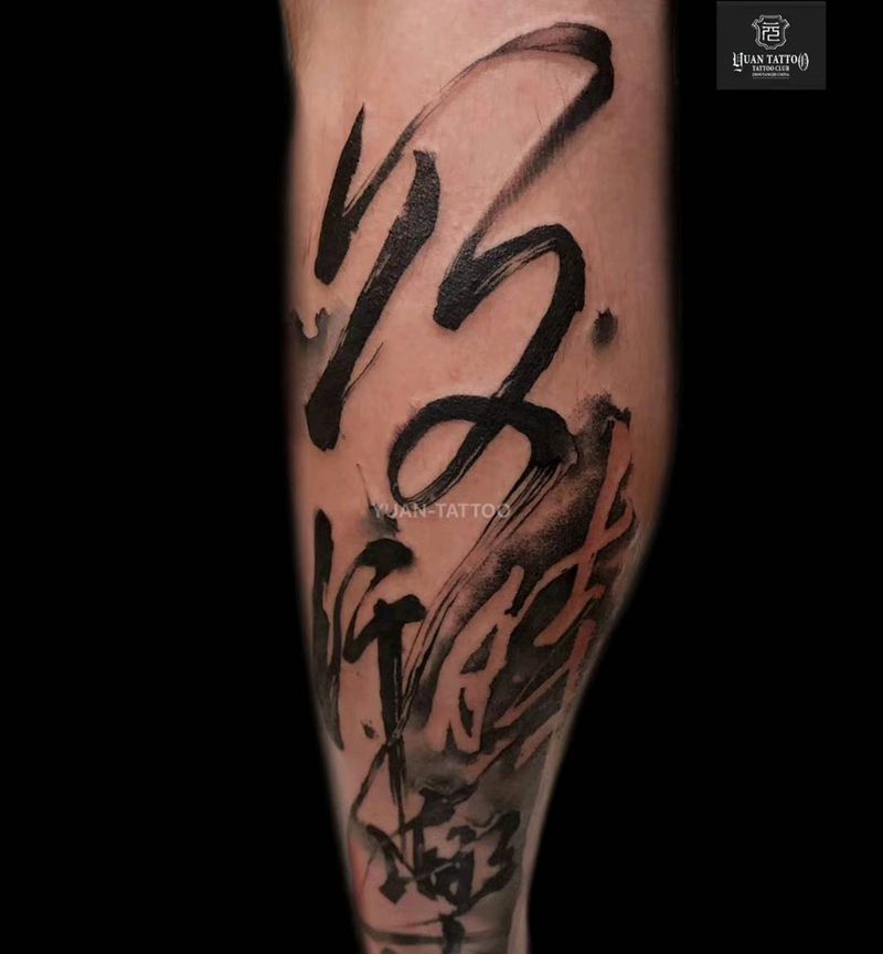 当前位置: 首页 >广东省广州市纹身店-YUAN-TATTOO 元刺青纹身图案>及时行乐纹身图片_腿部水墨文字书法纹身图案