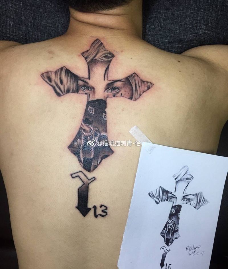 • H好看的十字架纹身图案 十字架纹身效果图