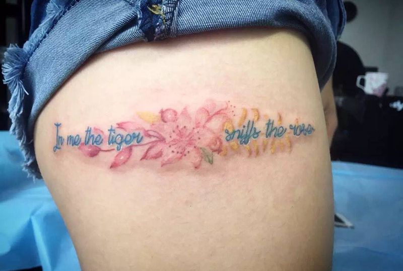 当前位置: 首页 >广东省广州市纹身店-摆渡猫刺青纹身图案>In me the tiger sniffs the rose.纹身图片