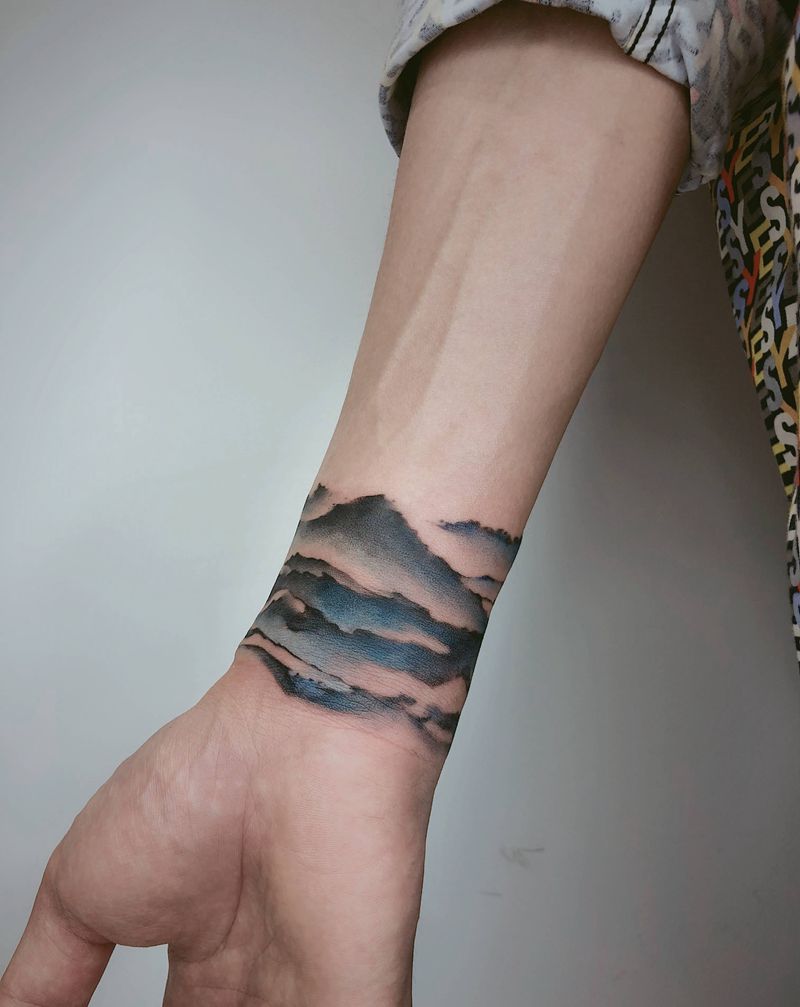 水墨手环纹身图片_手部手臂水彩水墨水墨水彩纹身图案