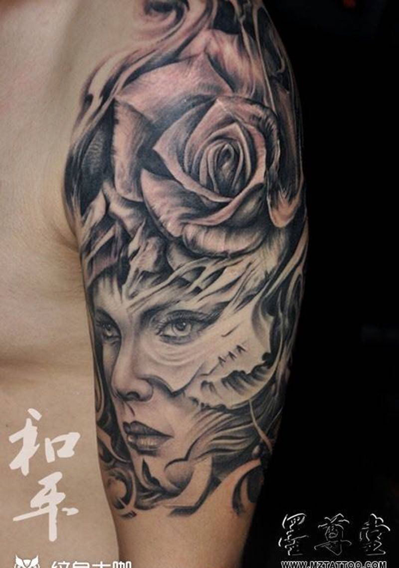 • 纹身吧推荐的披肩图腾半胛纹身图案作品展示