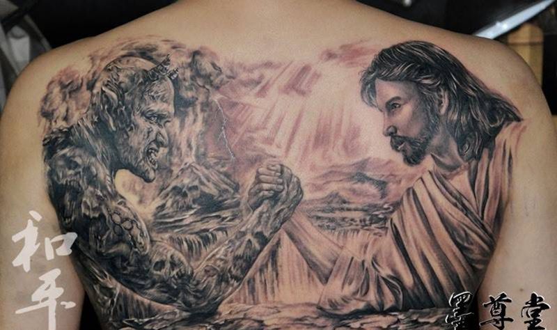 黑灰满背纹身图案