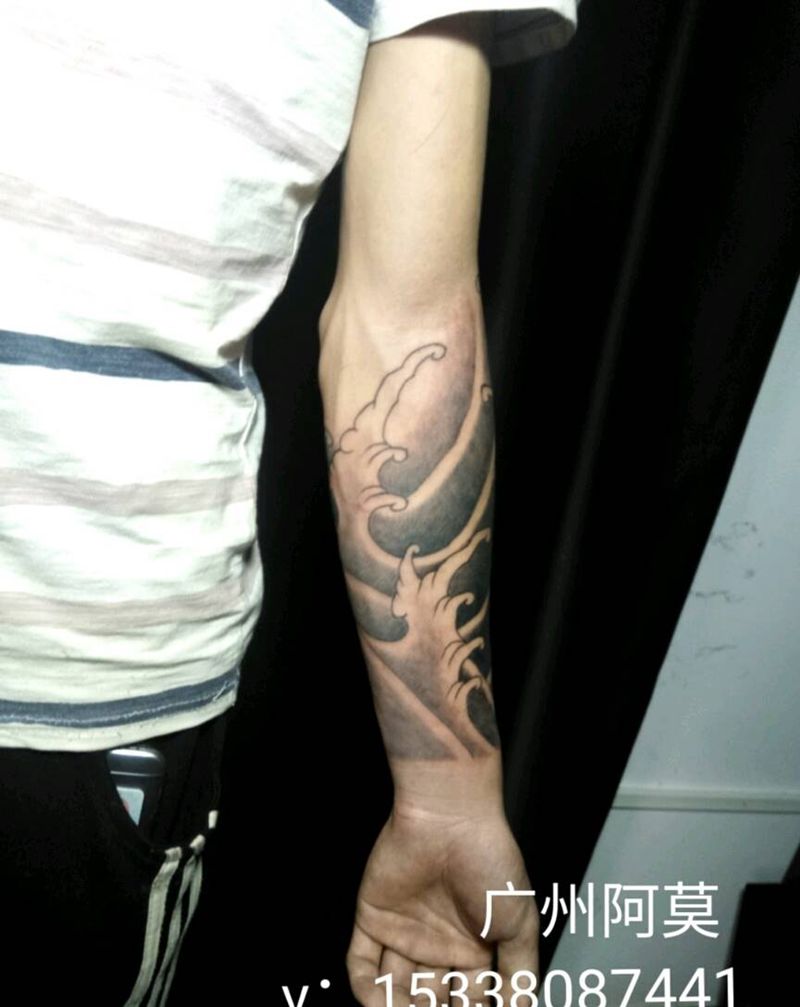 当前位置: 首页 >广东省广州市纹身店-广州莫刺青纹身图案>波浪臂纹身图片_臀部手臂手部欧美传统清新成品手稿纹身图案