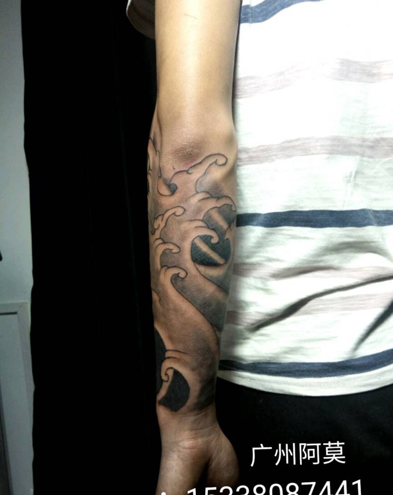 当前位置: 首页 >广东省广州市纹身店-广州莫刺青纹身图案>波浪臂纹身图片_臀部手臂手部欧美传统清新成品手稿纹身图案