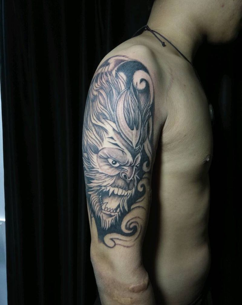 当前位置: 首页 >广东省广州市纹身店-广州莫刺青纹身图案>悟空纹身图片_臀部欧美传统肖像写实人物成品纹身图案