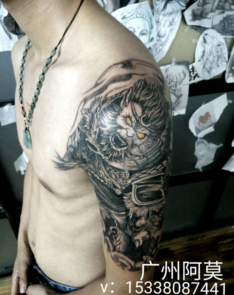 当前位置: 首页 >广东省广州市纹身店-广州莫刺青纹身图案>斗战圣佛纹身图片_肩部臀部手臂手部传统肖像写实成品手稿插画纹身图案