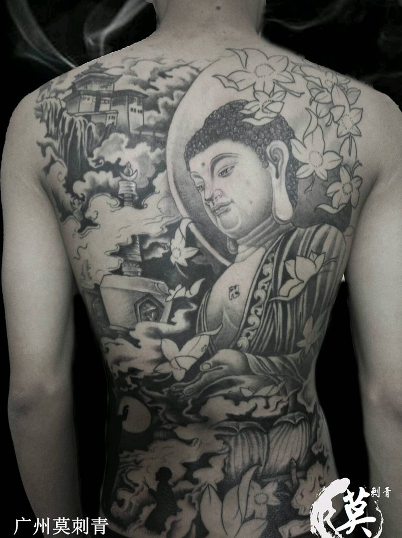 当前位置: 首页 >广东省广州市纹身店-广州莫刺青纹身图案>满背佛纹身图片_肩部背部欧美传统肖像写实国画成品手稿插画纹身图案