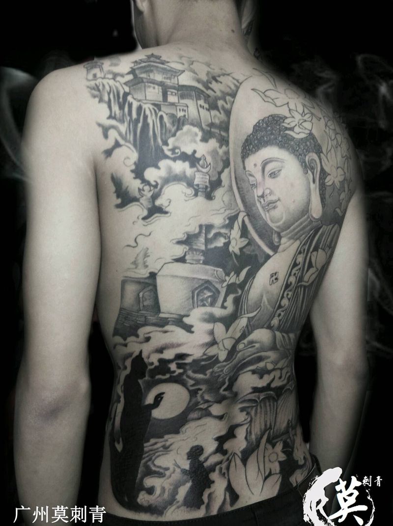 当前位置: 首页 >广东省广州市纹身店-广州莫刺青纹身图案>满背佛纹身图片_肩部背部欧美传统肖像写实国画成品手稿插画纹身图案