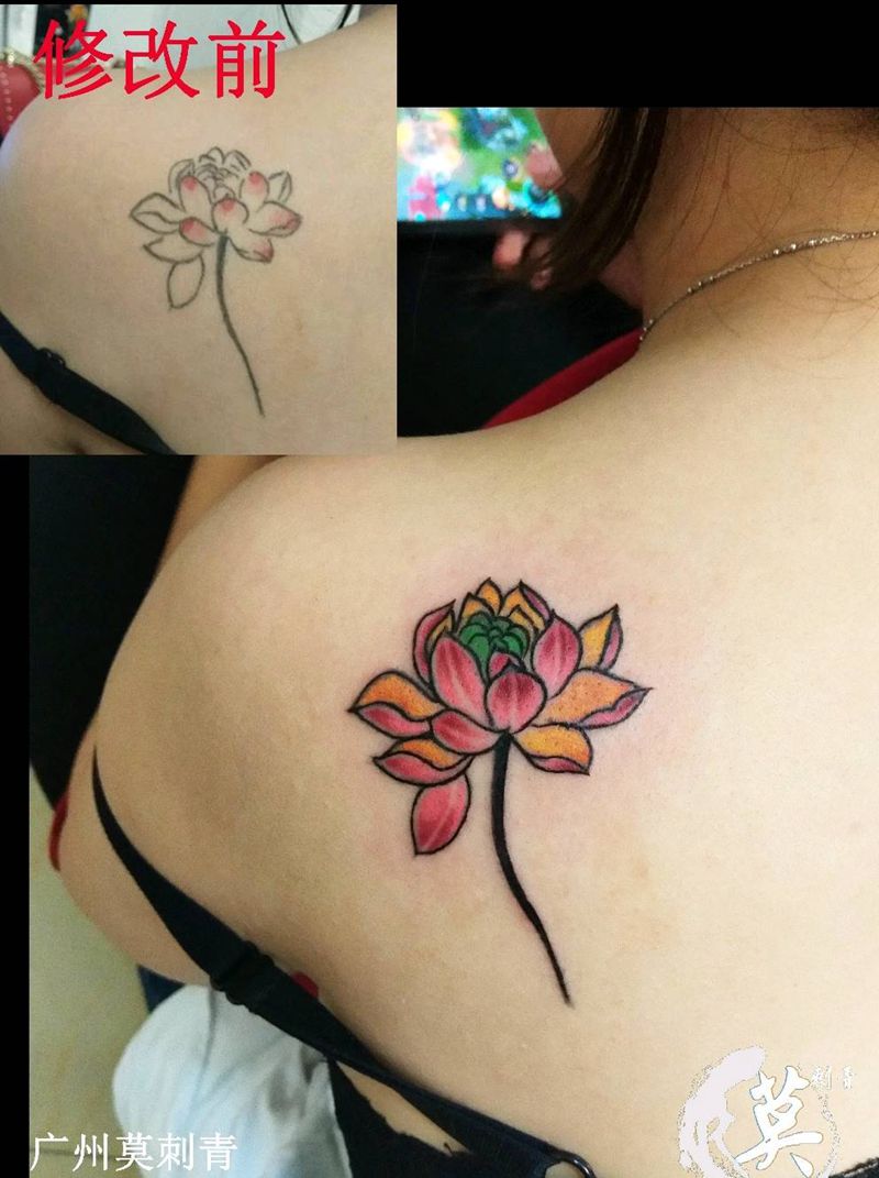 修改荷花纹身图片_肩部背部欧美传统习俗清新写实成品手稿插画纹身图案