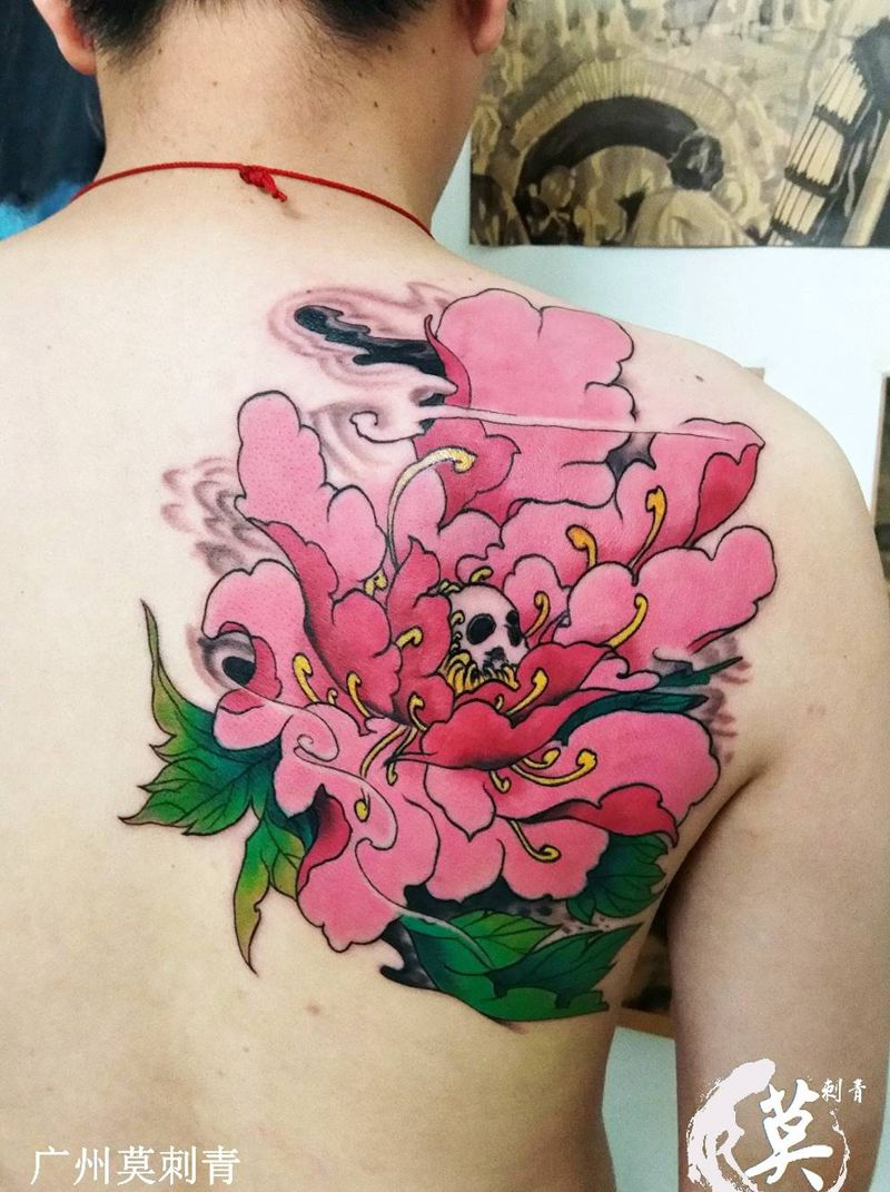 当前位置: 首页 >广东省广州市纹身店-广州莫刺青纹身图案>半肩艳彩牡丹花纹身图片_肩部背部欧美传统习俗肖像清新写实国画成品纹身图案