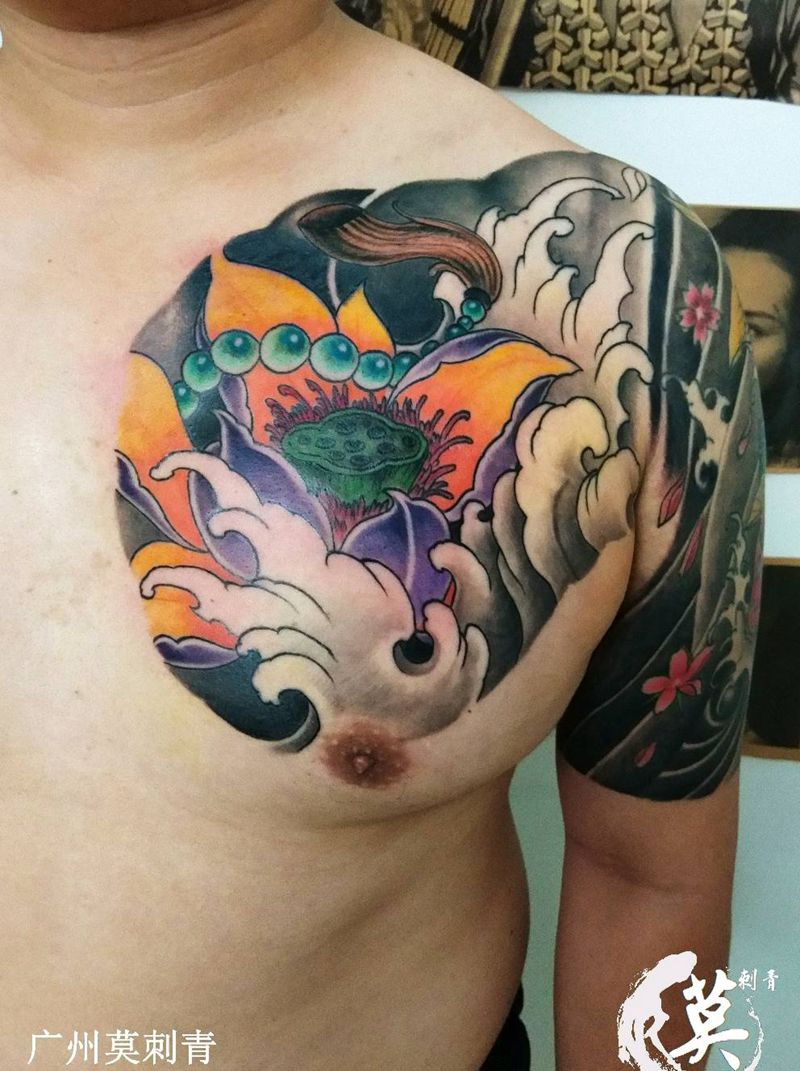 • 女性大花胸纹身_43张霸气漂亮的女性大花胸纹身图案作品