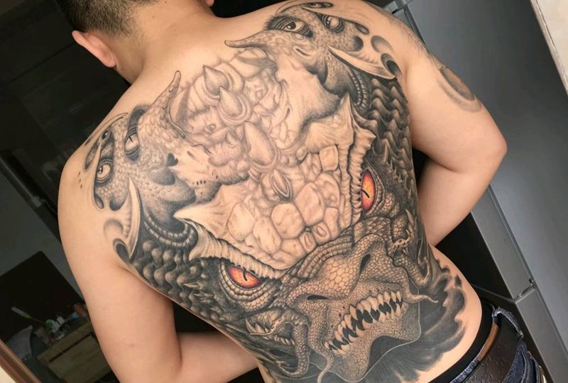 • T云龙九郎纹身图片_背部老传统云龙九郎纹身图案