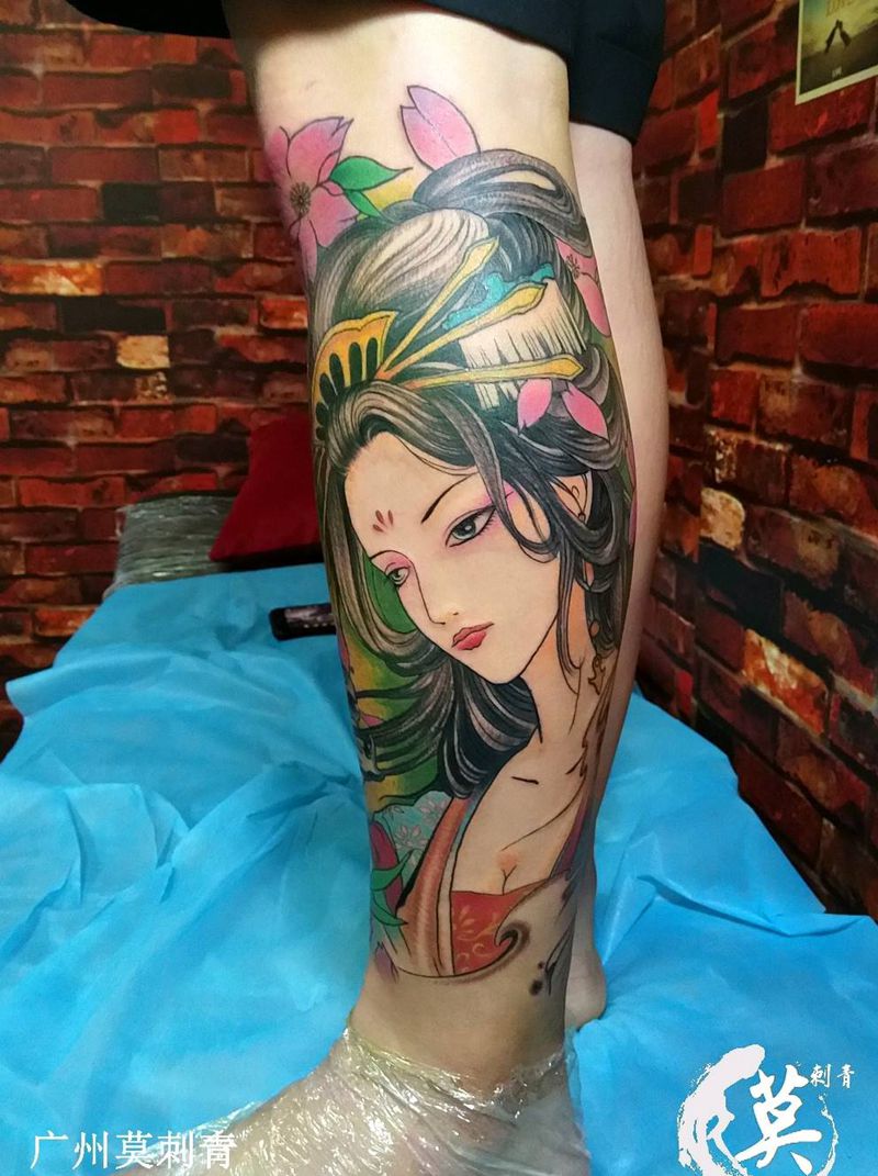 当前位置: 首页 >广东省广州市纹身店-广州莫刺青纹身图案>彩色美人包小腿纹身图片_腿部脚部欧美传统习俗肖像清新写实国画成品纹身图案