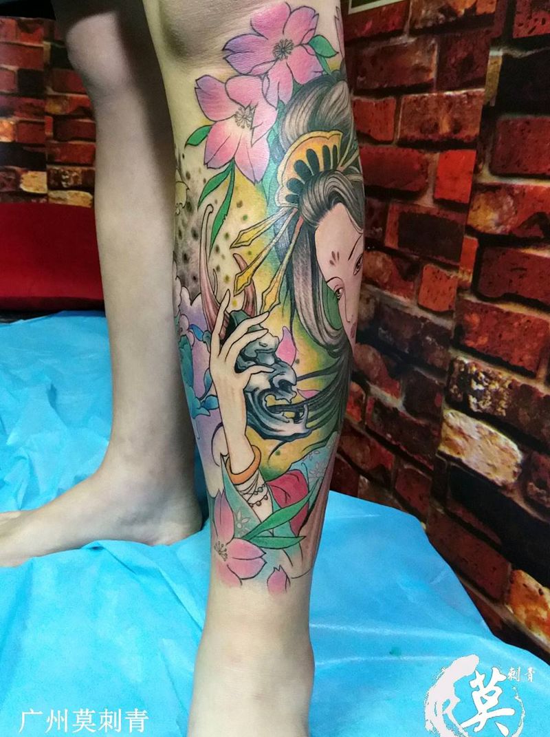 当前位置: 首页 >广东省广州市纹身店-广州莫刺青纹身图案>彩色美人包小腿纹身图片_腿部脚部欧美传统习俗肖像清新写实国画成品纹身图案