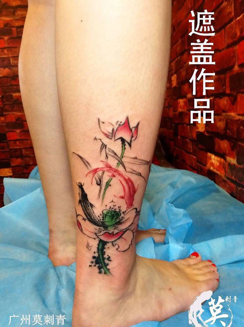 当前位置: 首页 >广东省广州市纹身店-广州莫刺青纹身图案>水墨遮盖纹身图片_腿部脚部欧美传统习俗肖像清新写实国画成品纹身图案