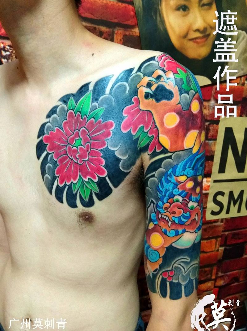 当前位置: 首页 >广东省广州市纹身店-广州莫刺青纹身图案>半甲遮盖作品纹身图片_肩部胸部手臂传统习俗肖像清新写实国画成品纹身图案