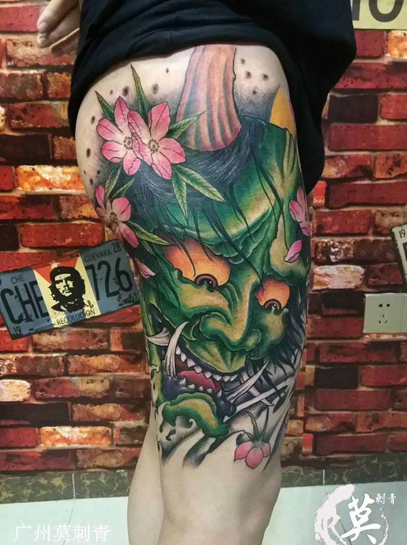 当前位置: 首页 >广东省广州市纹身店-广州莫刺青纹身图案>大腿般若纹身图片_腿部脚部新传统老传统般若彩色传统纹身图案