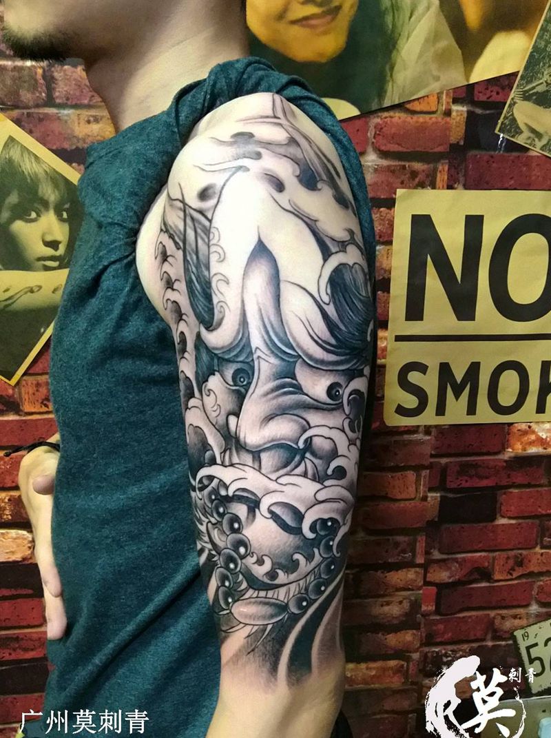 当前位置: 首页 >广东省广州市纹身店-广州莫刺青纹身图案>黑灰般若纹身图片_手臂手部新传统老传统般若大臂黑灰纹身图案