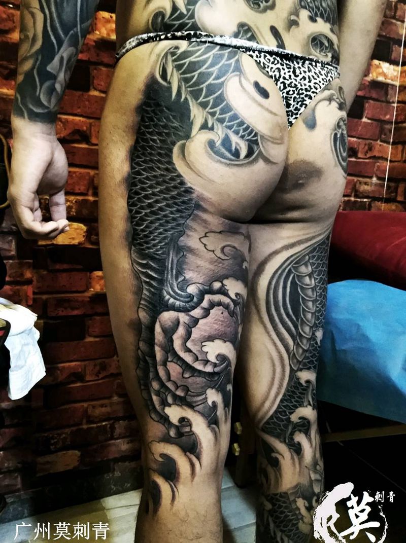 当前位置: 首页 >广东省广州市纹身店-广州莫刺青纹身图案>大龙作品纹身图片_背部脚部新传统老传统大龙满背通体纹身图案