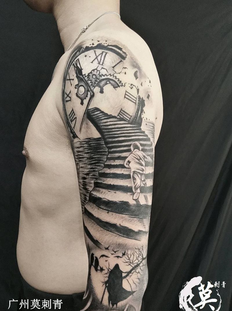 当前位置: 首页 >广东省广州市纹身店-广州莫刺青纹身图案>写实花臂纹身图片_手臂手部欧美写实花臂黑灰纹身图案