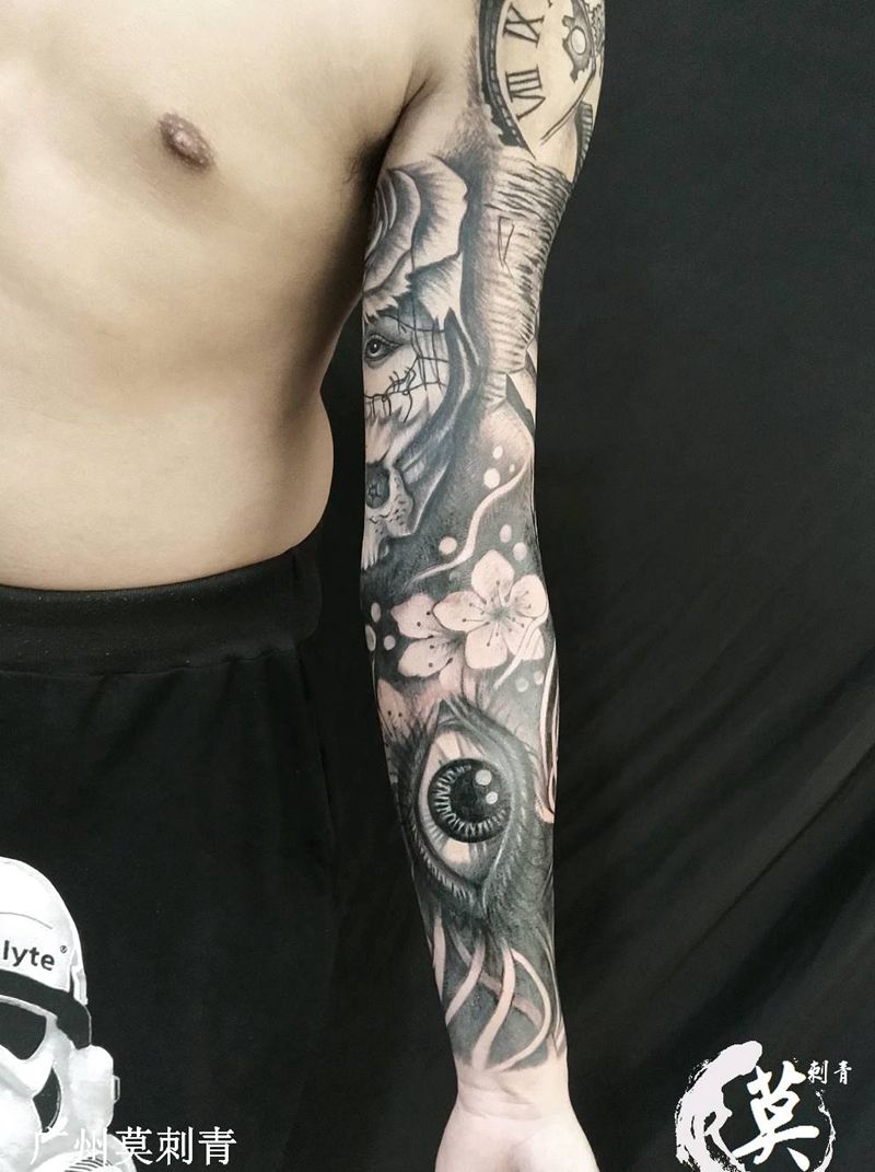 当前位置: 首页 >广东省广州市纹身店-广州莫刺青纹身图案>写实花臂纹身图片_手臂手部欧美写实花臂黑灰纹身图案