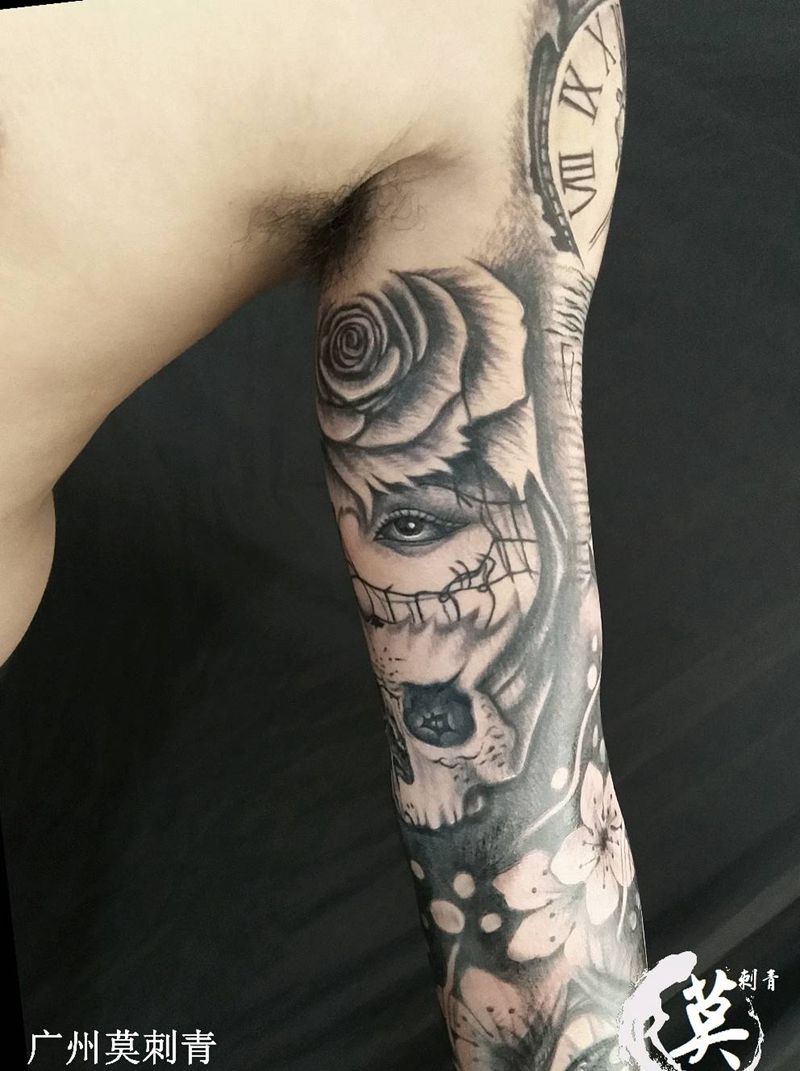 当前位置: 首页 >广东省广州市纹身店-广州莫刺青纹身图案>写实花臂纹身图片_手臂手部欧美写实花臂黑灰纹身图案