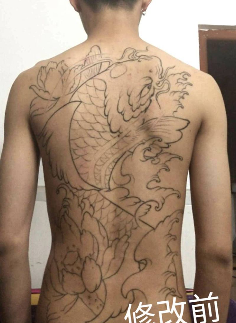 黑灰满背纹身图案