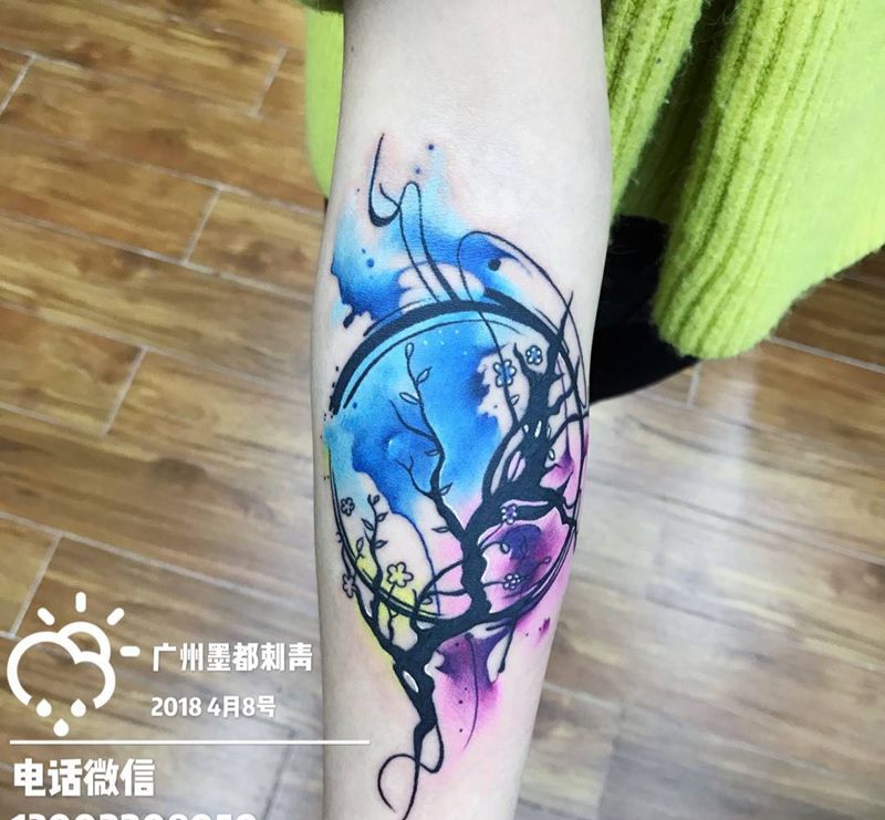当前位置: 首页 >广东省广州市纹身店-墨都刺青纹身图案>水彩遮盖作品纹身图片_原创水彩植物图腾清新手臂手部成品手稿插画纹身图案
