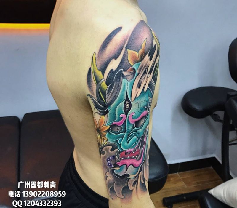 当前位置: 首页 >广东省广州市纹身店-墨都刺青纹身图案>大臂般诺纹身图片_手部手臂肩部传统鬼神成品纹身图案