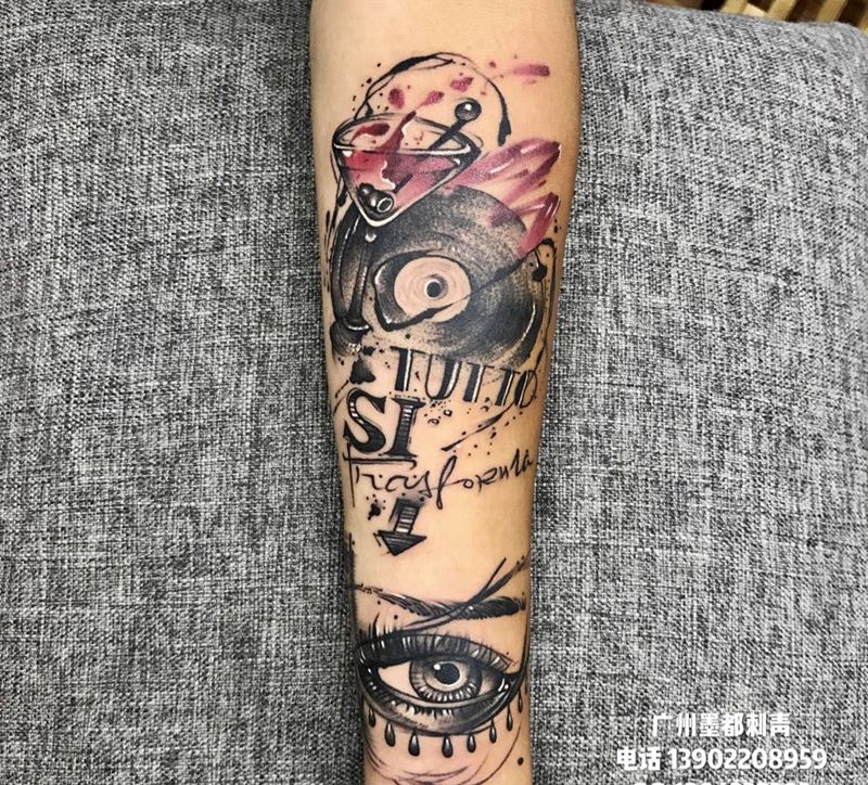 当前位置: 首页 >广东省广州市纹身店-墨都刺青纹身图案>红酒配DJ碟纹身图片_手部手臂点刺水墨纹身图案