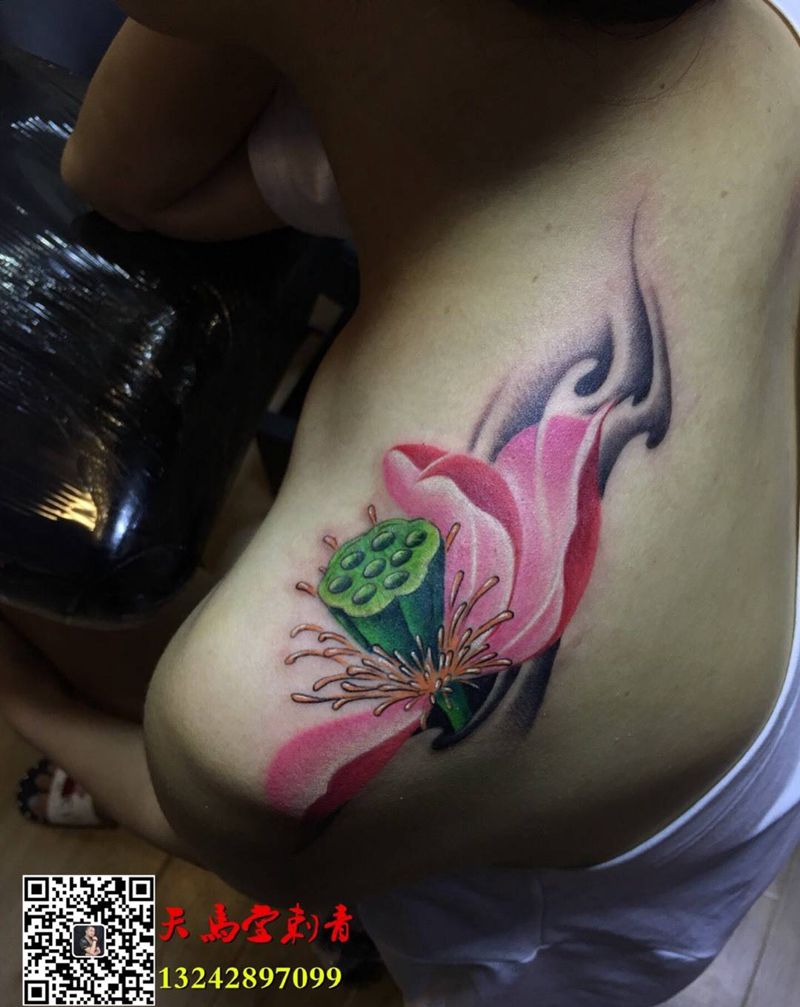 一组15张莲花纹身手
