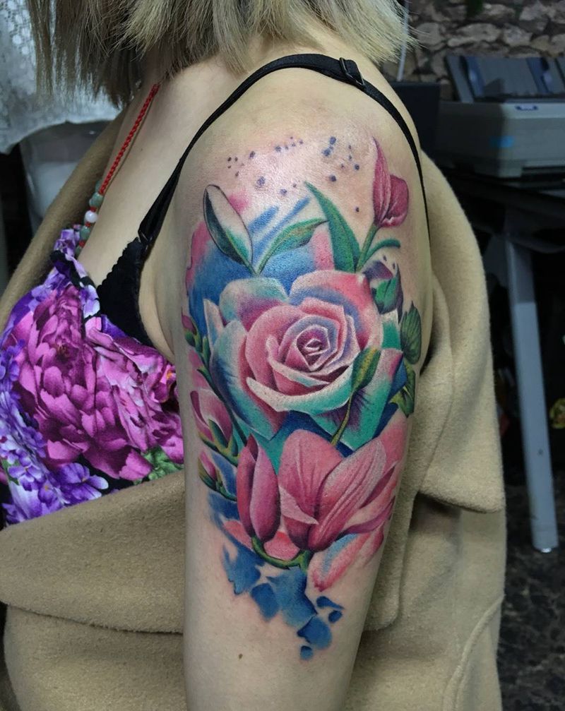 • 女性大花胸纹身_43张霸气漂亮的女性大花胸纹身图案作品