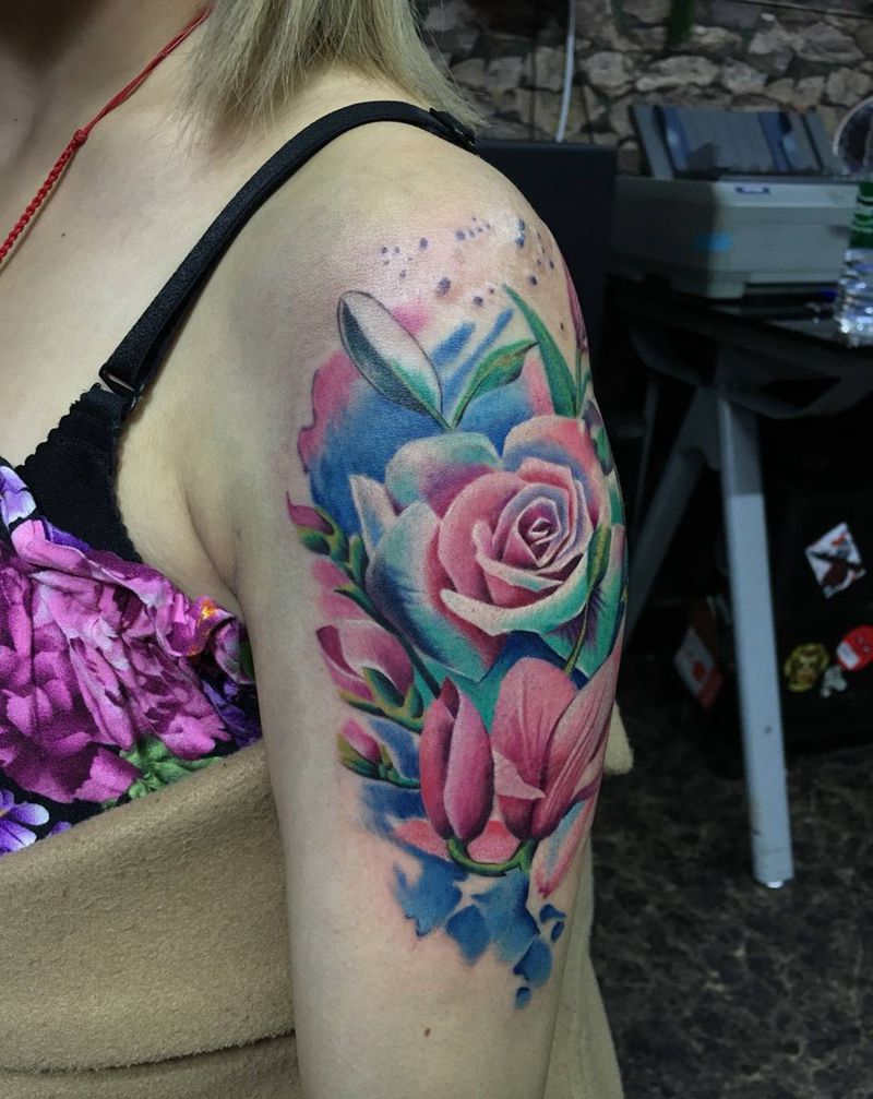• 女性大花胸纹身_43张霸气漂亮的女性大花胸纹身图案作品