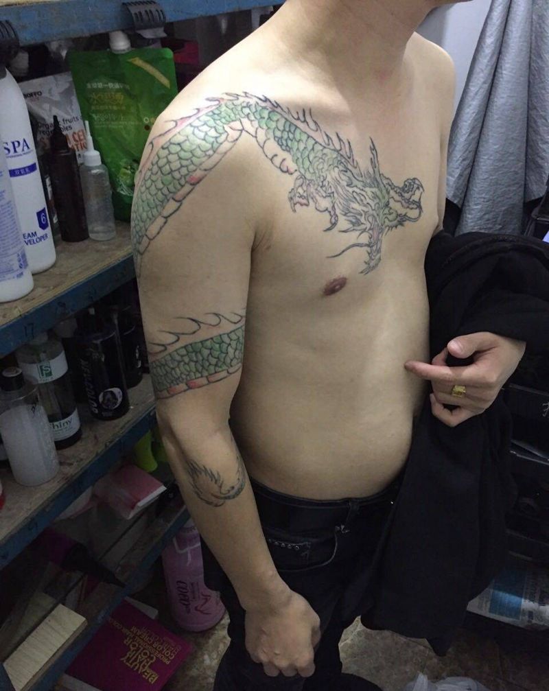 当前位置: 首页 >广东省广州市纹身店-天马堂刺青纹身图案>盖过肩龙第一期纹身图片