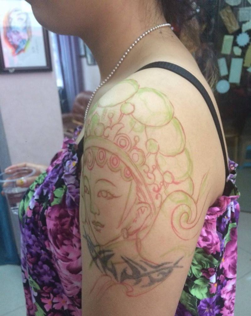 当前位置: 首页 >广东省广州市纹身店-天马堂刺青纹身图案>花旦盖旧纹身纹身图片
