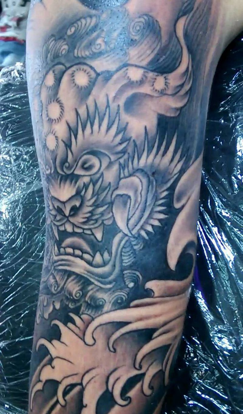 当前位置: 首页 >广东省广州市纹身店-刺客纹身纹身图案>唐狮纹身图片_手臂传统动物鬼神成品纹身图案