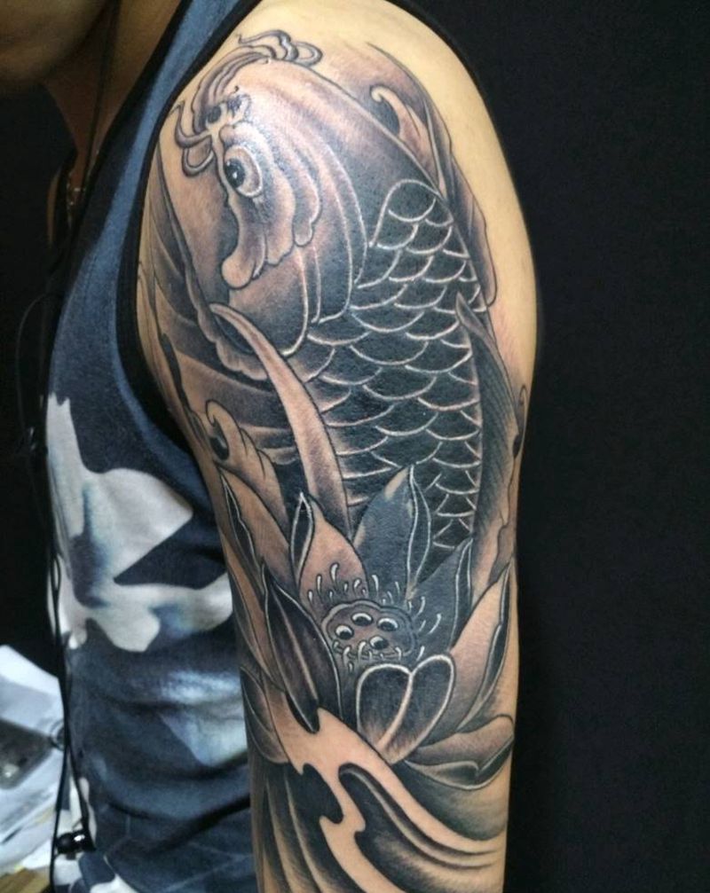 当前位置: 首页 >广东省广州市纹身店-刺客纹身纹身图案>鲤鱼掩盖纹身图片
