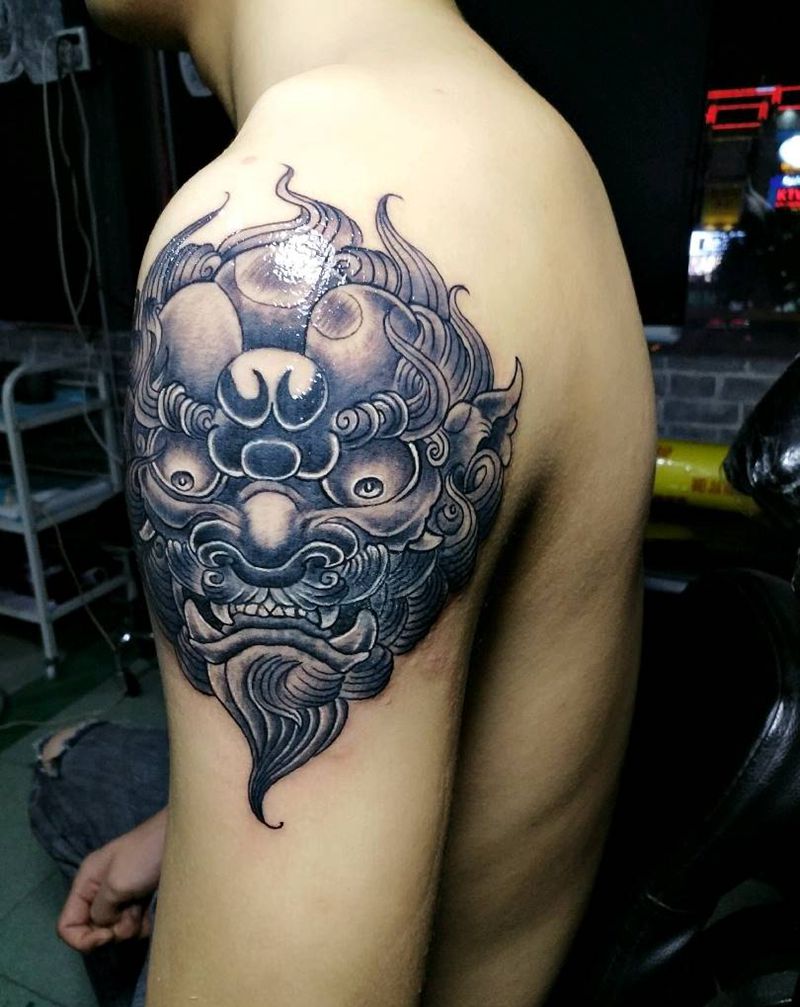 当前位置: 首页 >广东省广州市纹身店-刺客纹身纹身图案>唐狮掩盖作品纹身图片