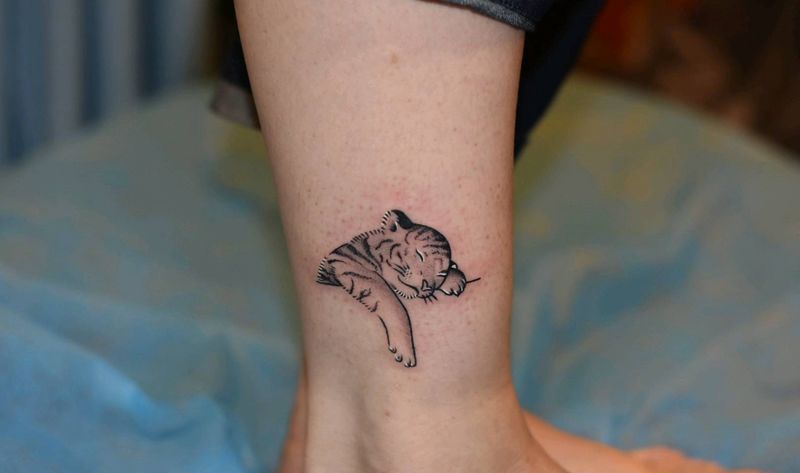 小老虎纹身图片_腿部点刺动物老虎纹身图案