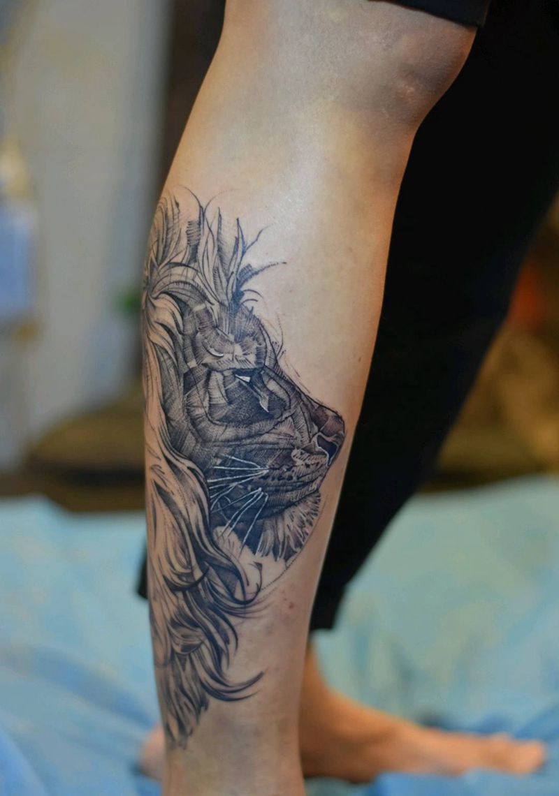 当前位置: 首页 >广东省广州市纹身店-ReAL-TATTOO(番禺店)纹身图案>狮子纹身图片_腿部几何点刺线条点刺动物纹身图案