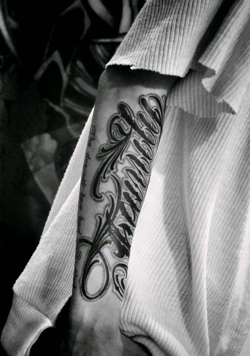 当前位置: 首页 >广东省广州市纹身店-ReAL-TATTOO(番禺店)纹身图案>family花体纹身图片_手臂花体字纹身图案